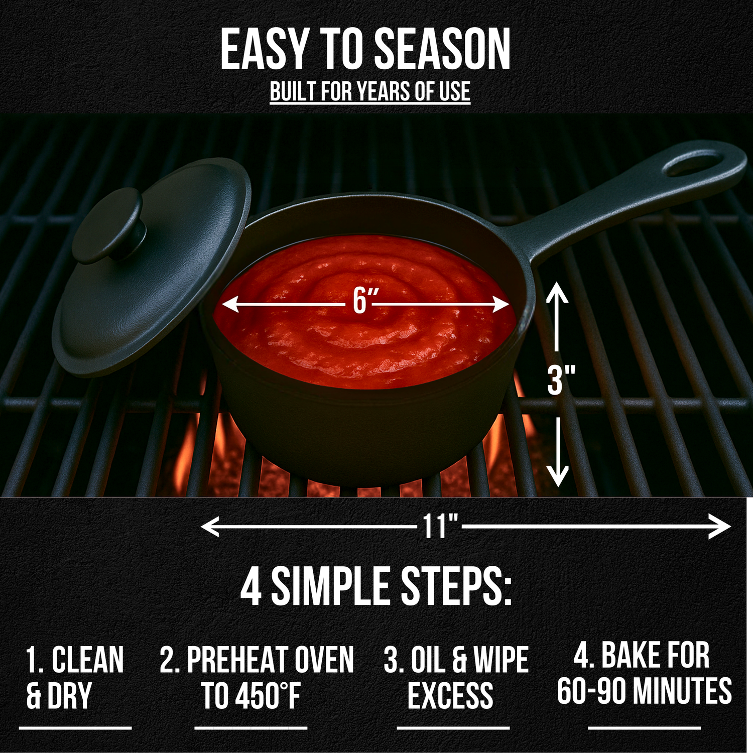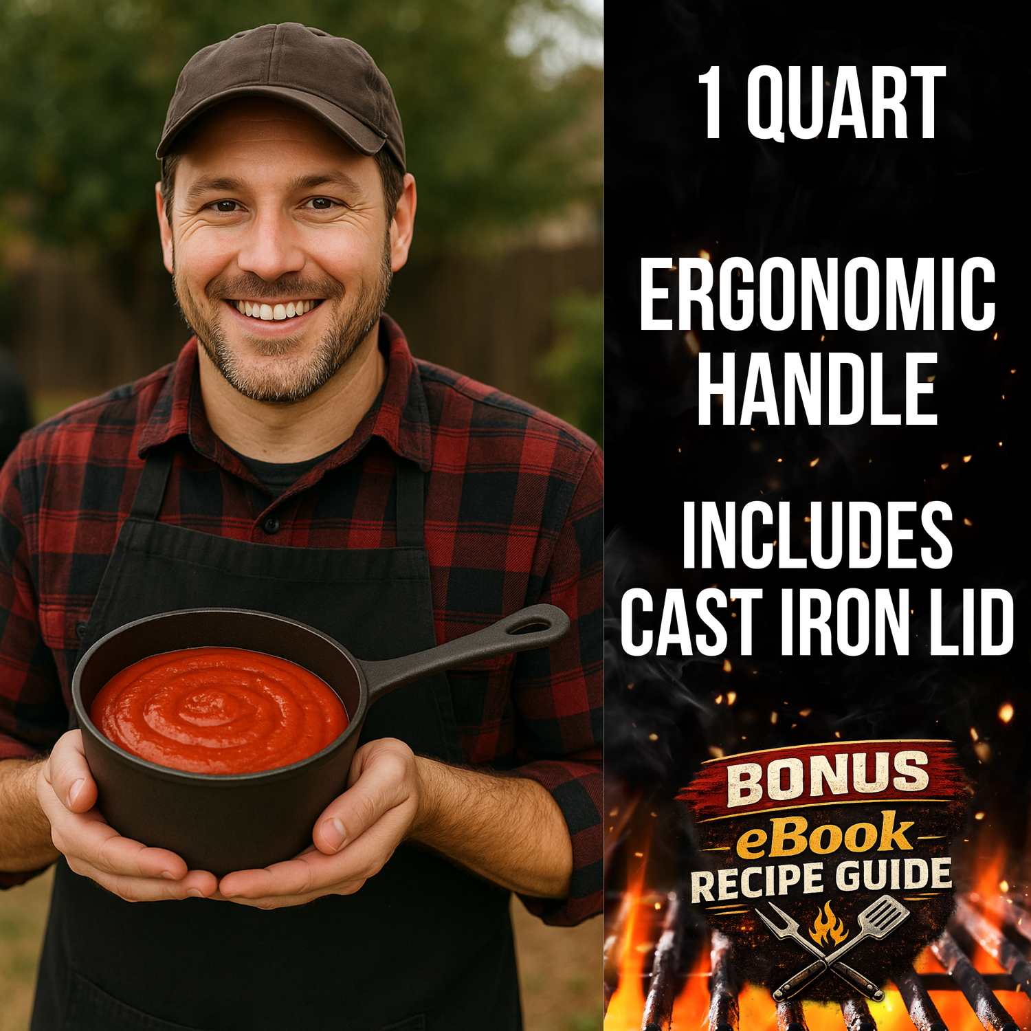 - Our versatile 1-quart cast iron pot is just the right size for all your cooking adventures. Whether you’re basting meats, melting butter, simmering sauces, or preparing small dishes like vegetables and desserts, this pot handles it all with ease. Perfect for BBQs, grilling, smoking, camping, or home stovetop cooking, its compact design ensures convenience without sacrificing capacity. A must-have for any cooking enthusiast, this pot brings versatility and performance to every meal.