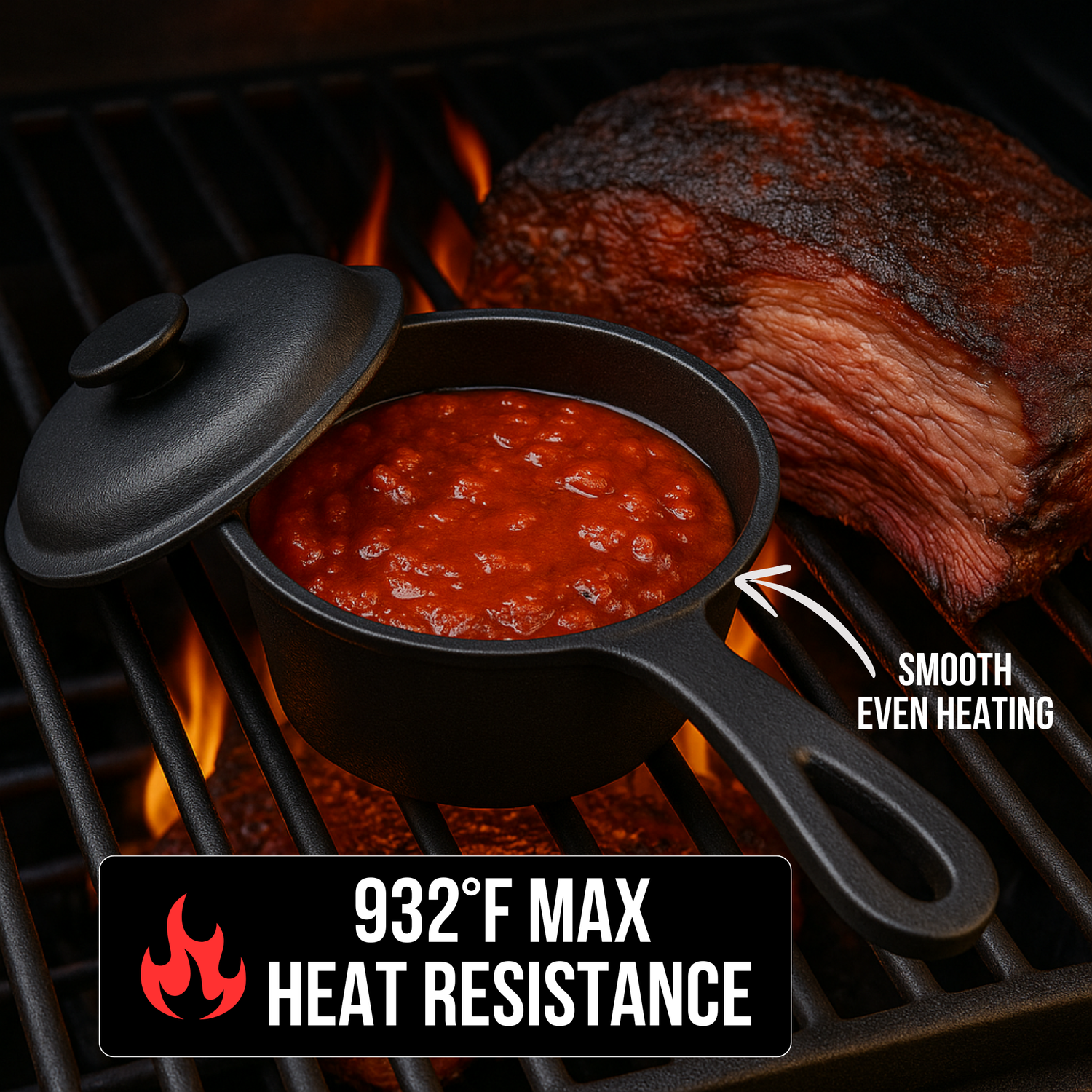 Professional 1 QT Cast Iron Sauce Pot with Lid & Brush, Perfect for Sauce, Butter & Cheese - Built for Cooking, Grilling & Camping